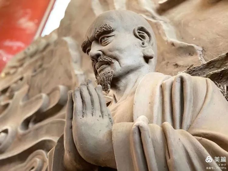 转过弯,同行的朱老师请教师父塑像的取材用料,师父说:“天水的队伍非常有智慧,为给寺院节省开支,都是就地取材,有泥土、稻草、棉花、芦苇、木骨架……以虔诚之心、高超技艺精雕细刻,成就这气势雄伟、庄严瑞丽之象。